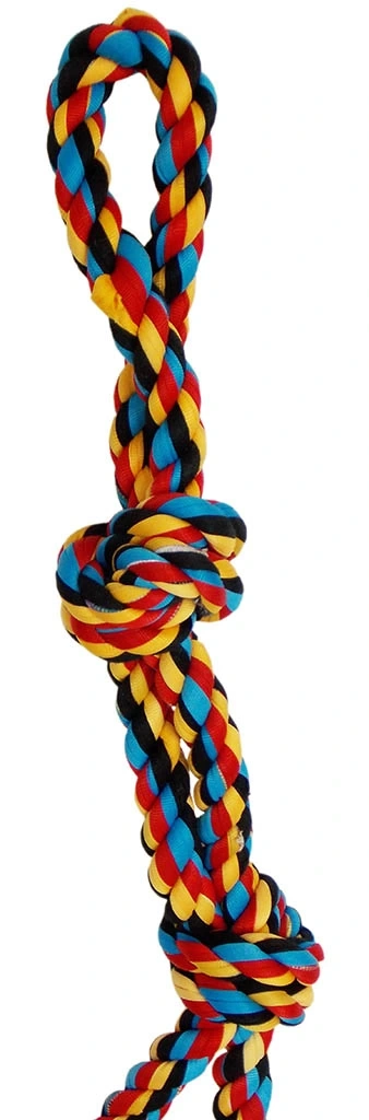 52 cm uzunluğunda 8 mm çapında iki adet renkli ipin birbirine sarılmasıyla elde edilmiş köpekler için stres ipi