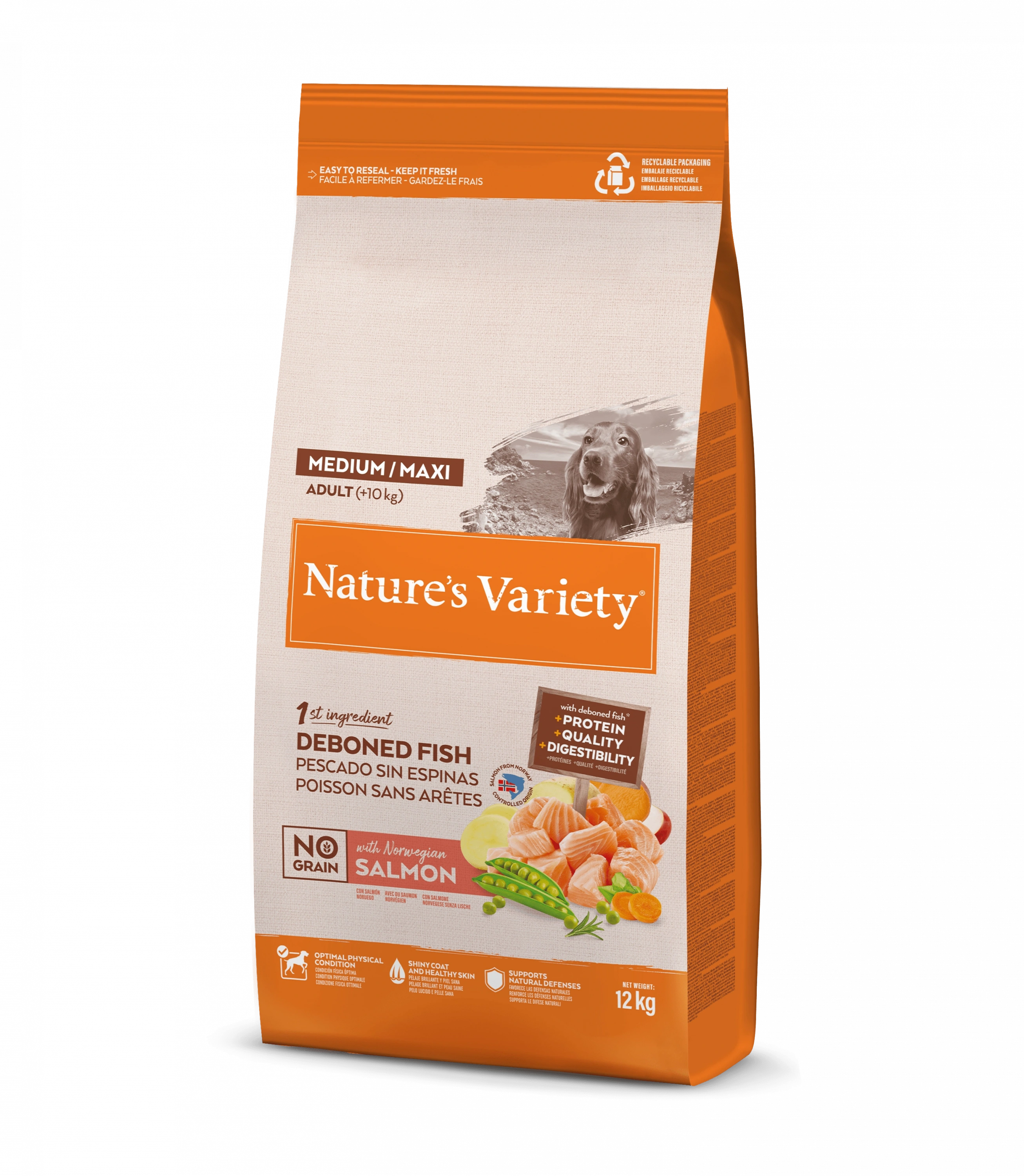 İÇERİK: Kılçıksız somon * (%21), Kurutulmuş ton balığı proteini (%20), kurutulmuş bezelye* (%12), kurutulmuş patates (%9), bezelye nişastası, kümes hayvan yağı (%7), kurutulmuş nohut (%5), hidrolize protein (%4), bezelye lifleri, kurutulmuş hindiba kökü, patates proteini, kurutulmuş havuç (%0.5 = %4 Taze havuç), kurutulmuş elma (%0.3 = %2 taze elma), mineraller.